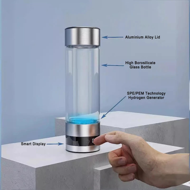Custom 2025 Improved Glass Hydrogen Water Bottle Generator SPE/PEM Technology LED Display Premium Hydrogen Rich Water Bottle